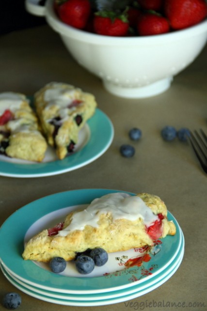 Kicking in this holiday weekend I present to you Strawberry Blueberry Scones! They are my version to celebrate the red, white and blue weekend!